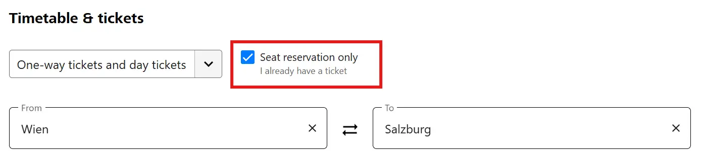 “Nur Sitzplatzreservierung - Ich habe schon ein Ticket”